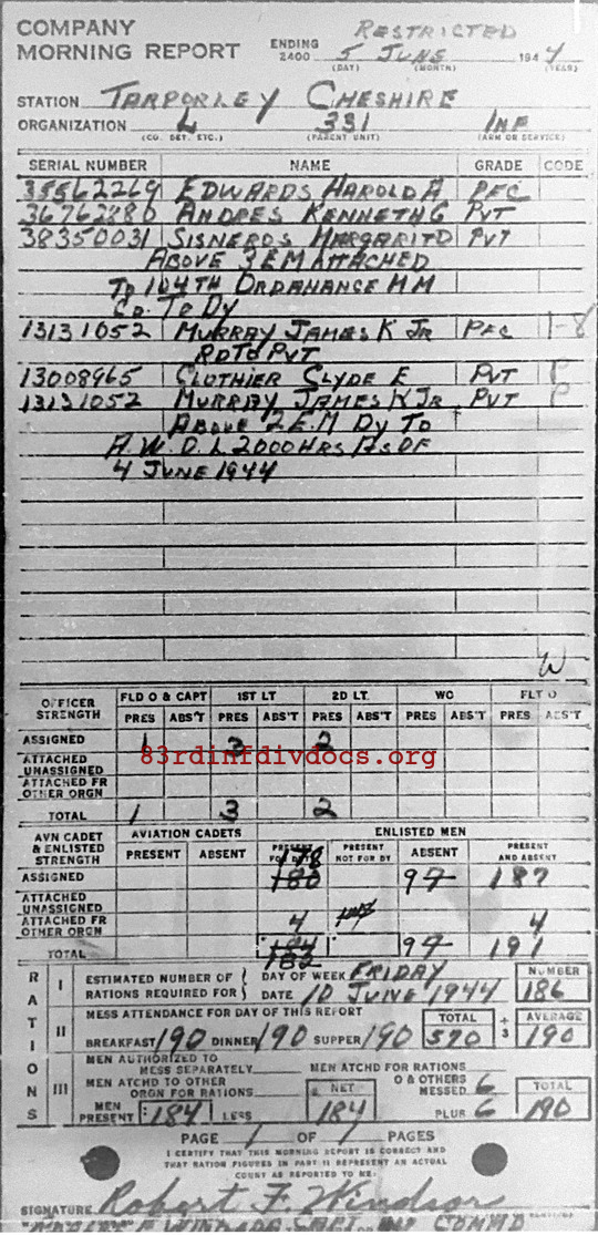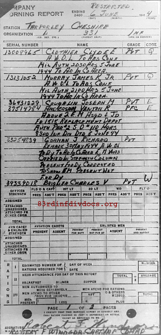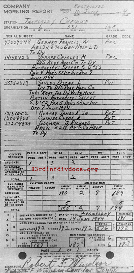 | 1944-06-06 | PVT | Confined to Company Area as of June 6, 1944 | L / 331 | view page | |