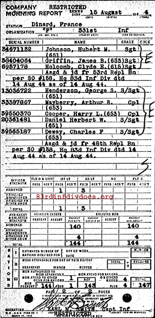| 1944-08-15 | SSGT | Assigned and joined from 48th Replacement Battalion as of August 14, 1944 | 651 | F / 331 | view page |