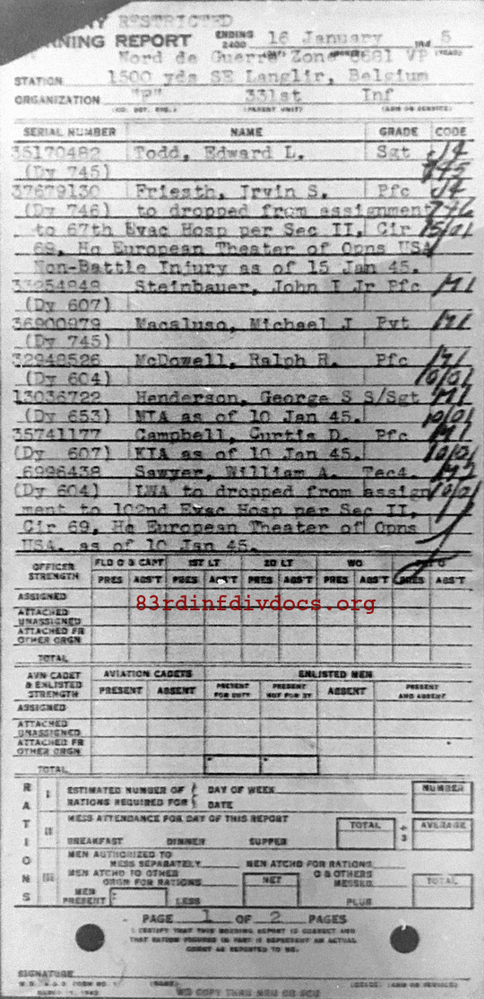 | 1945-01-16 | SSGT | Missing in action as of January 10, 1945 | 653 | F / 331 | view page |
