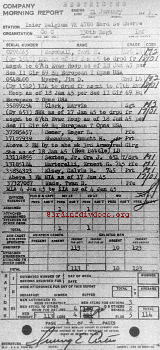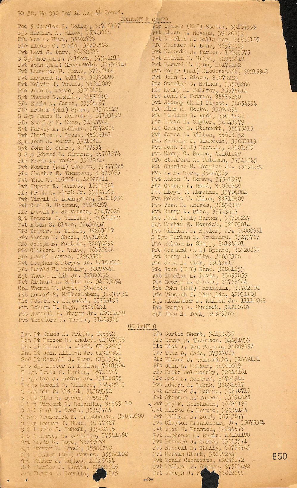 | Unit | G Company, 330th Infantry Regiment, 83rd Infantry Division |