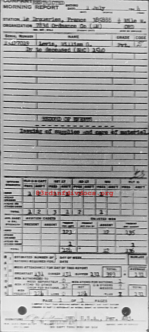 | Unit | 783rd Ordnance Company, 83rd Infantry Division |