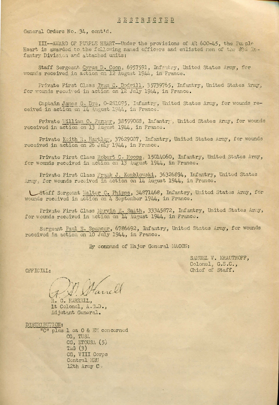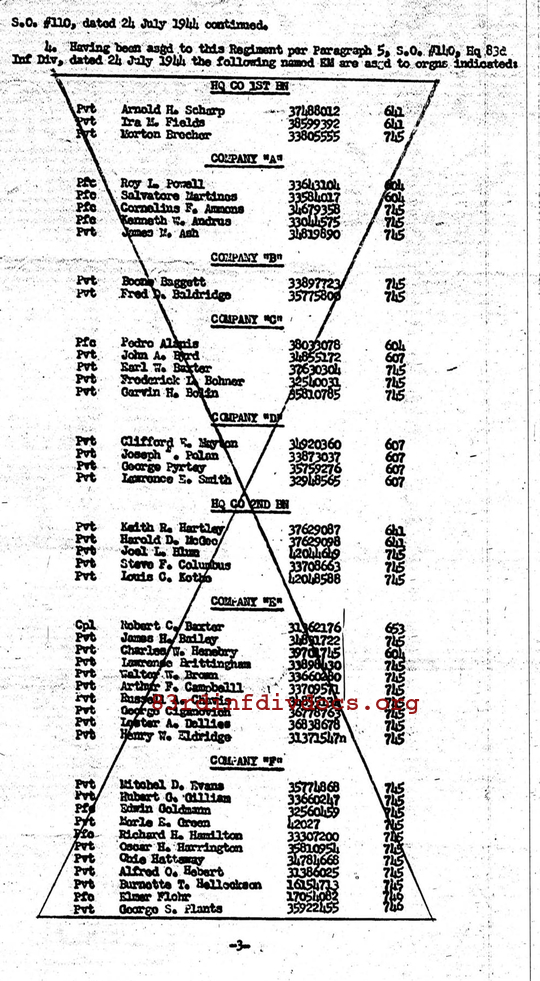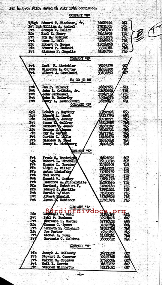 | Unit | 1st Platoon, G Company, 329th Infantry Regiment, 83rd Infantry Division |