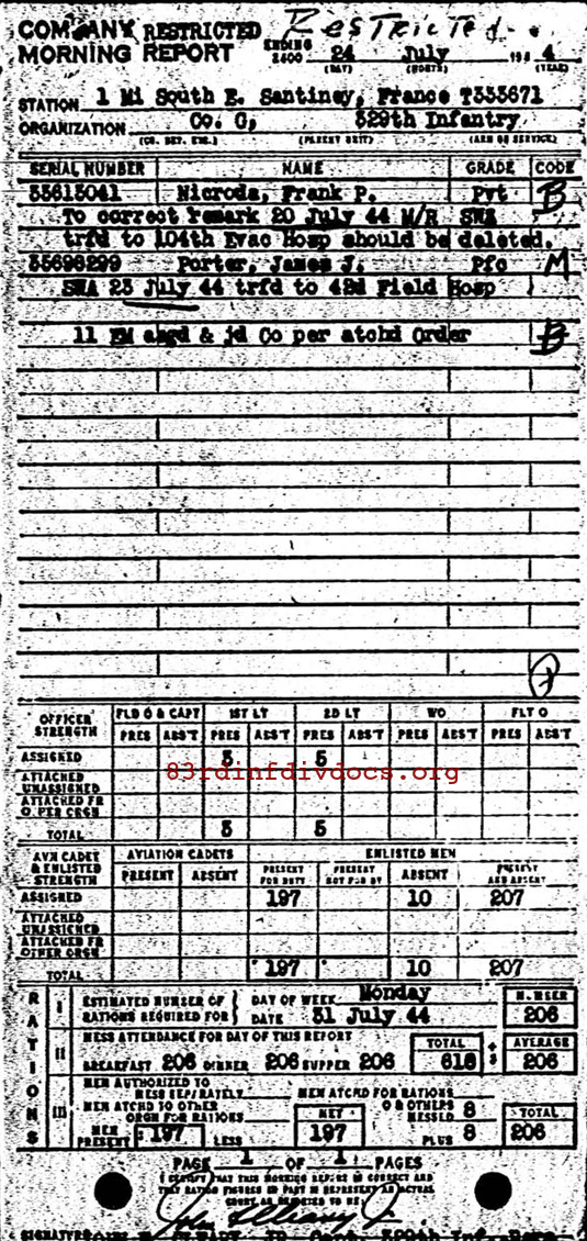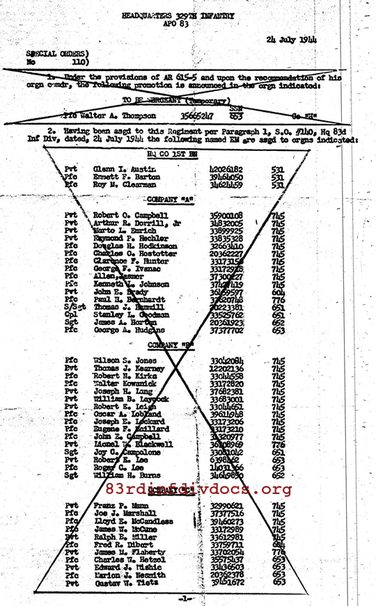 | 1944-07-24 | PFC | Assigned and joined from unknown unit as of July 24, 1944 | 745 | G / 329 | view page |