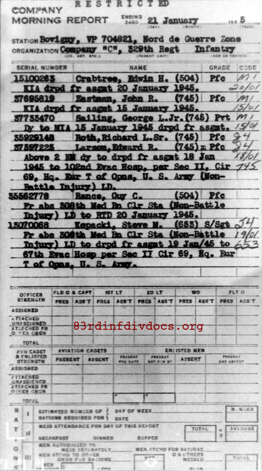 | 1945-01-21 | PFC | Killed in action on January 20, 1945 | 504 | C / 329 | view page |