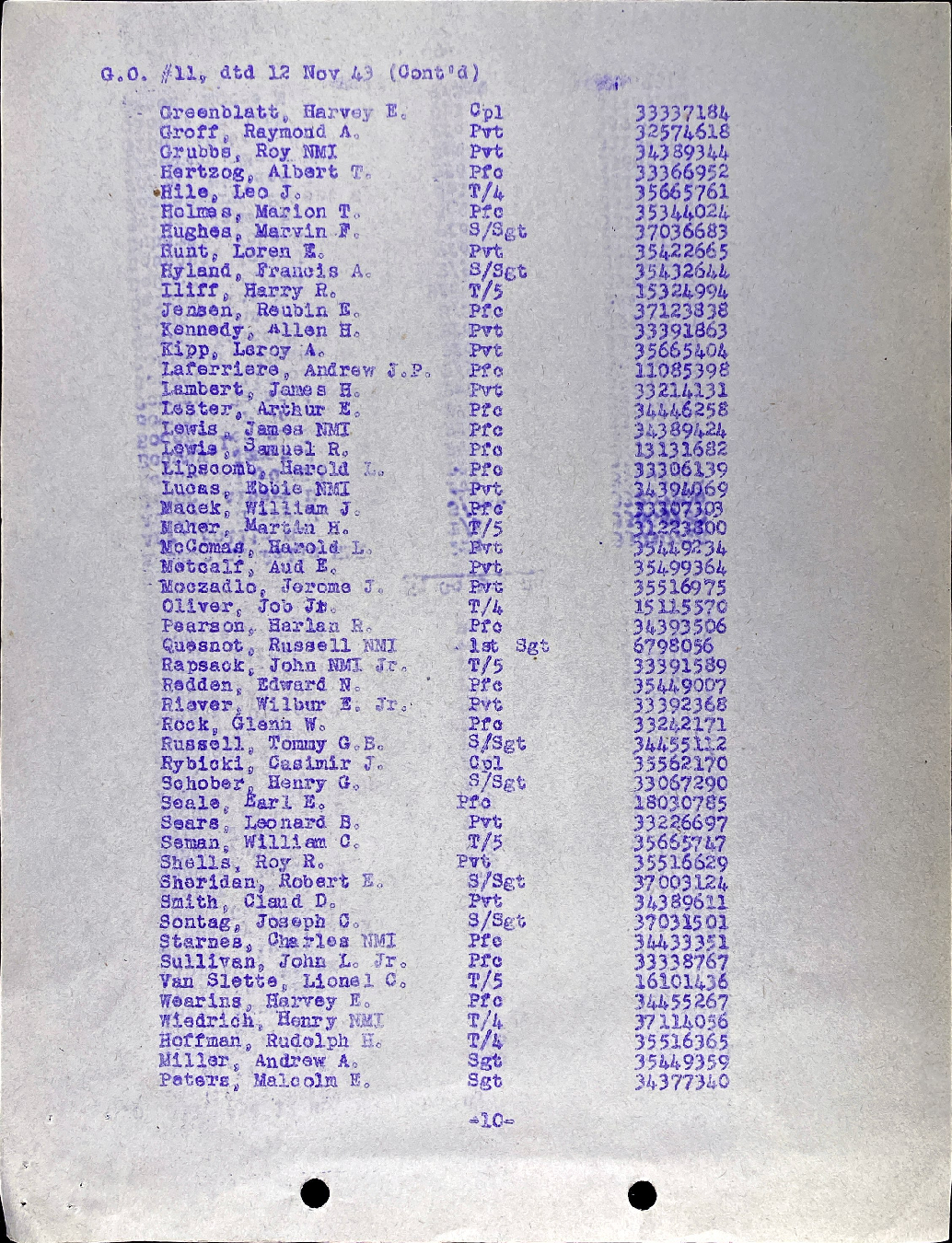| Unit | Headquarters Company, 1st Battalion, 329th Infantry Regiment, 83rd Infantry Division |