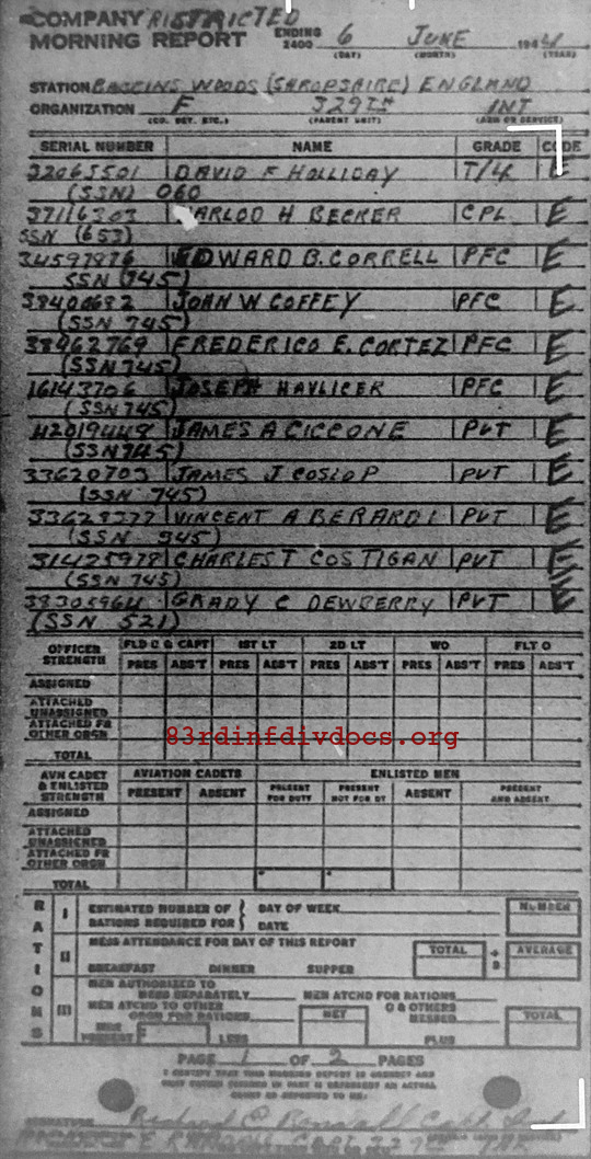 | Unit | F Company, 329th Infantry Regiment, 83rd Infantry Division |