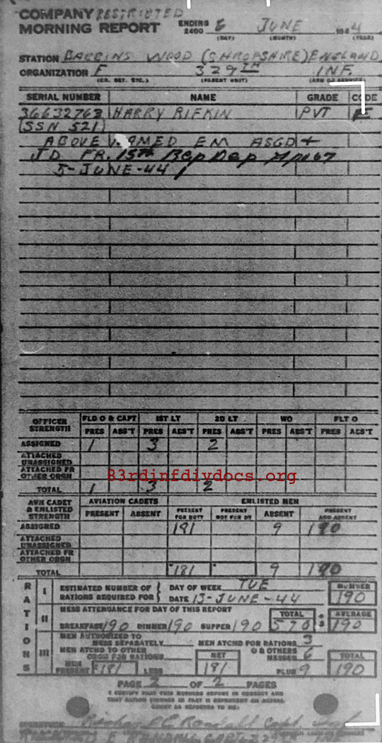 | 1944-06-06 | PFC | Assigned and joined from 15th Replacement Depot as of June 5, 1944 | 745 | F / 329 | view page |