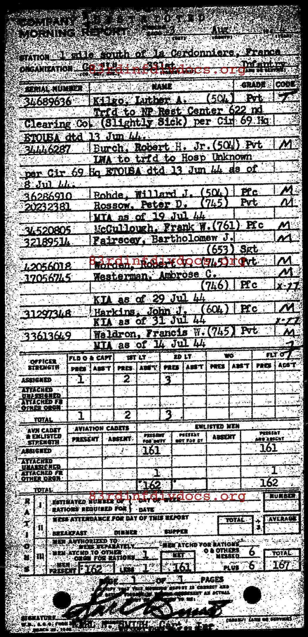 | 1944-11-06 | PFC | Killed in action on July 12, 1944, which corrects MR of August 3, 1944 | 746 | L / 331 | view page |