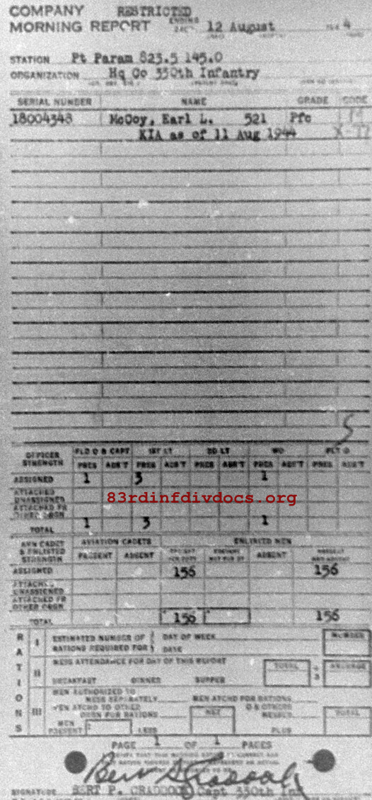 | Unit | 330th Infantry Regiment, 83rd Infantry Division |
