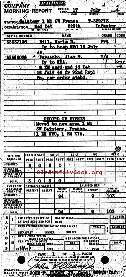 | Unit | Medical Detachment, 329th Infantry Regiment, 83rd Infantry Division |