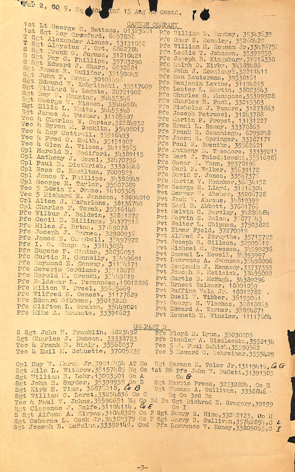 | Unit | Cannon Company, 330th Infantry Regiment, 83rd Infantry Division |