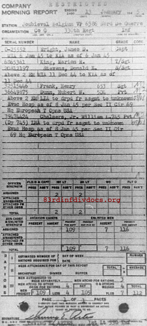 | 1945-01-13 | SSGT | Killed in action on December 11, 1944 | G / 330 | view page | |
