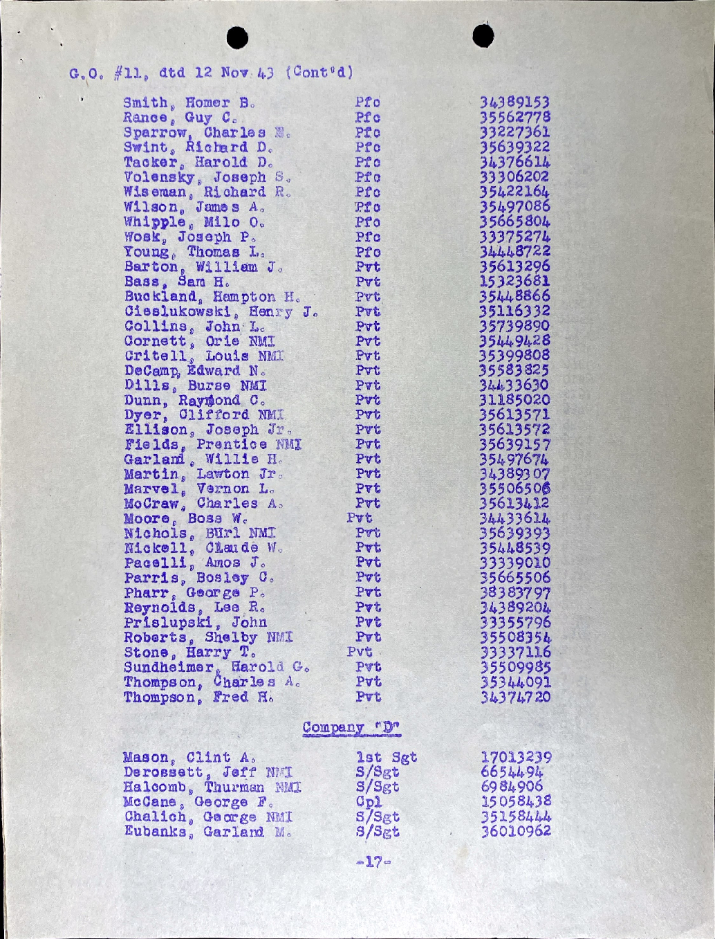 | Unit | C Company, 329th Infantry Regiment, 83rd Infantry Division |