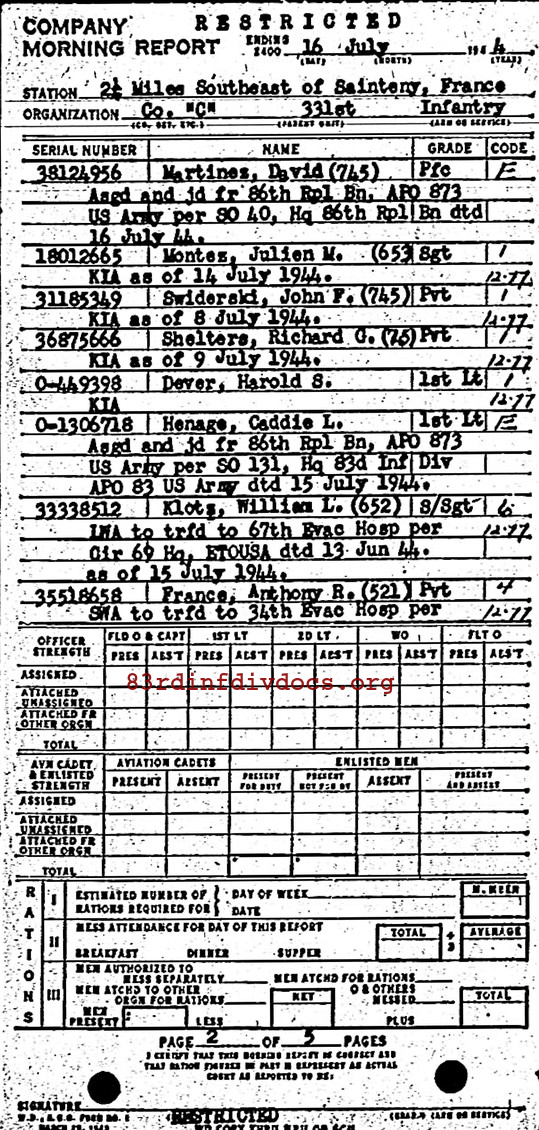 | 1944-07-16 | PVT | Killed in action on July 8, 1944 | 745 | C / 331 | view page |