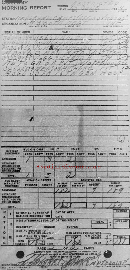 | Unit | A Company, 330th Infantry Regiment, 83rd Infantry Division |