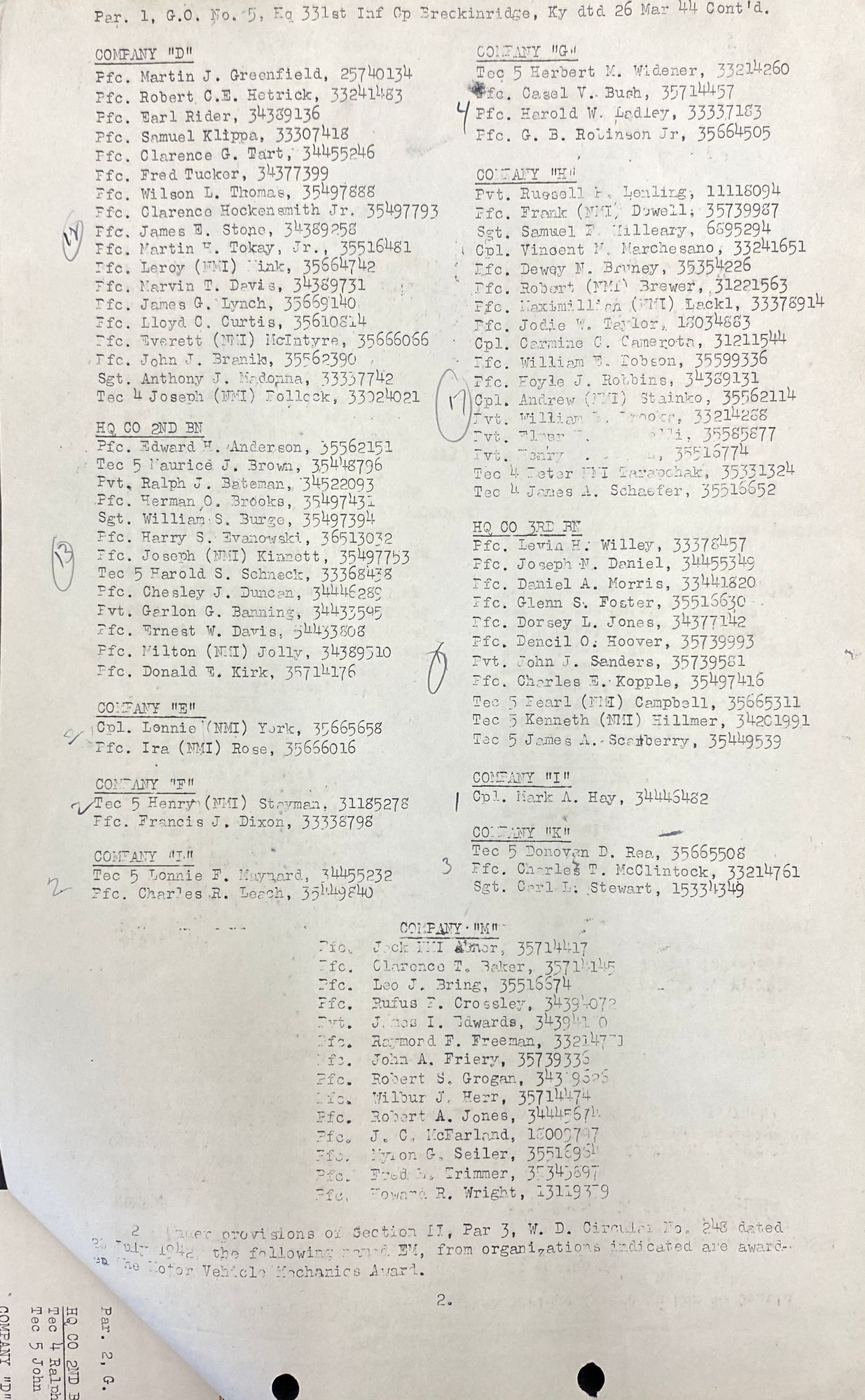 | Unit | H Company, 331st Infantry Regiment, 83rd Infantry Division |