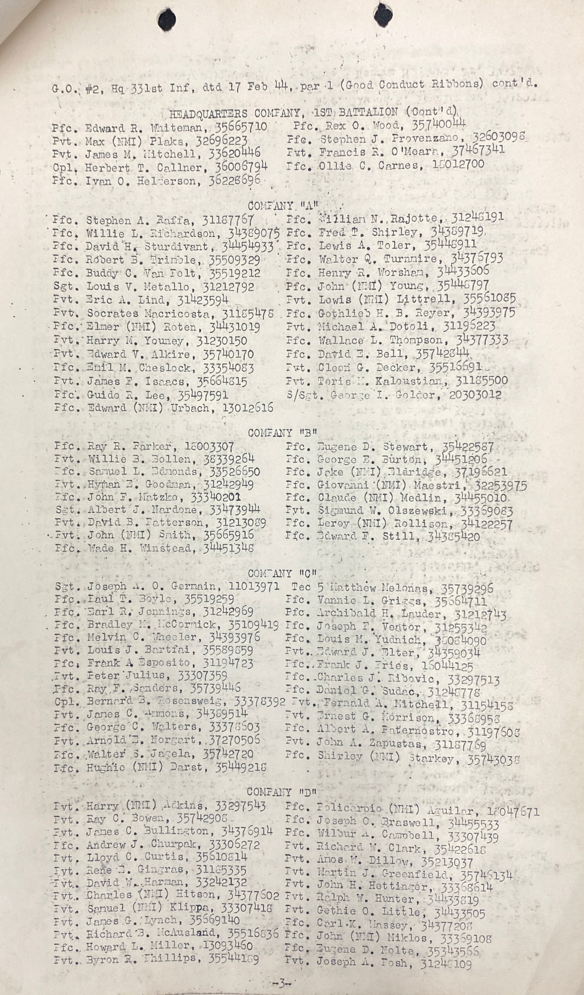 | 1944-07-15 | PVT | Killed in action on July 14, 1944 | B / 331 | view page | |