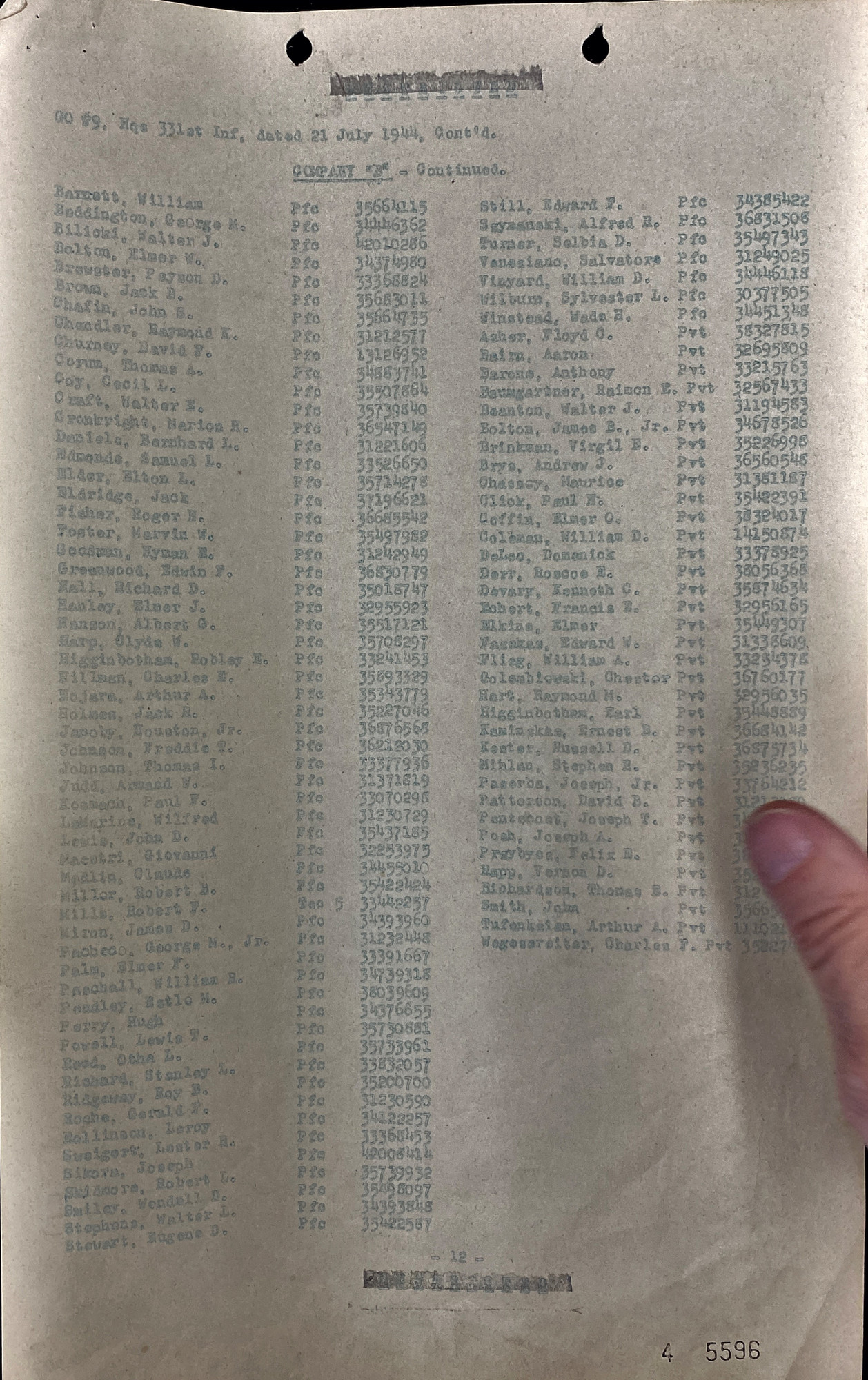 | Unit | 331st Infantry Regiment, 83rd Infantry Division |