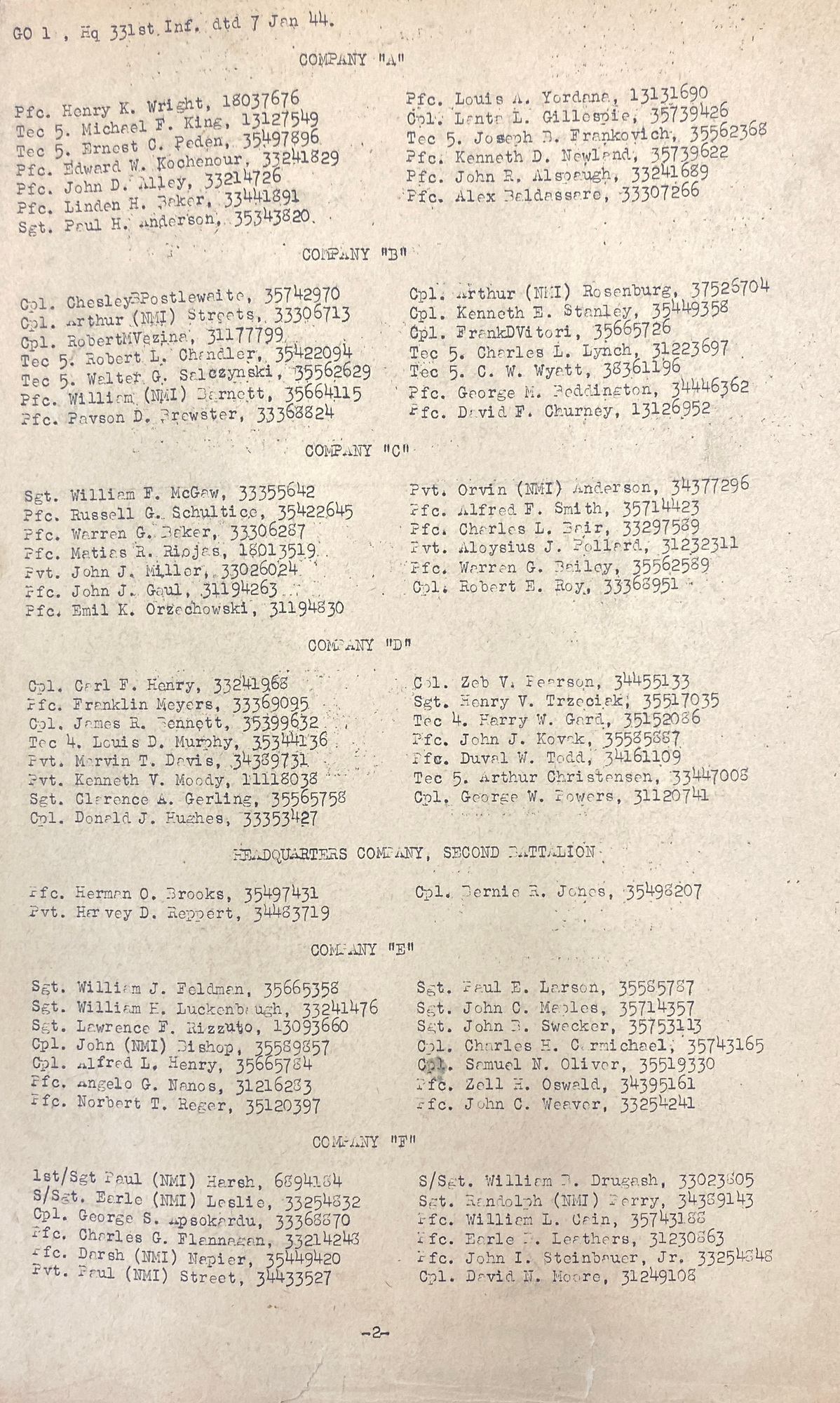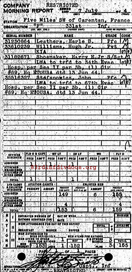 | Unit | 331st Infantry Regiment, 83rd Infantry Division |