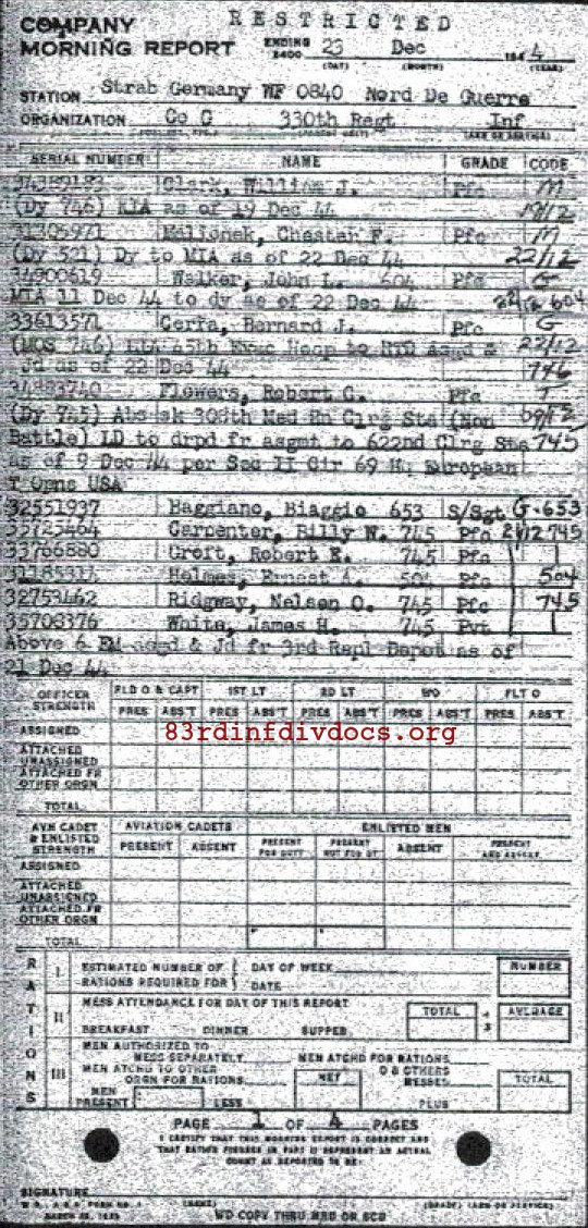 | Unit | G Company, 330th Infantry Regiment, 83rd Infantry Division |