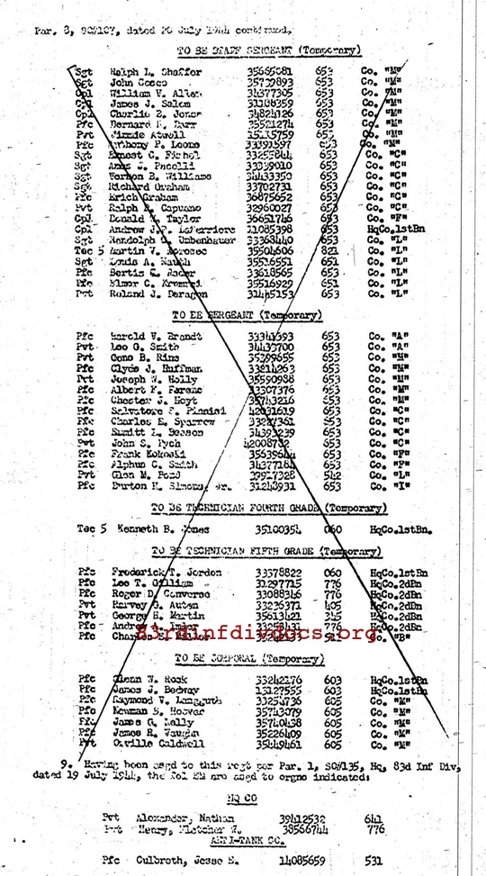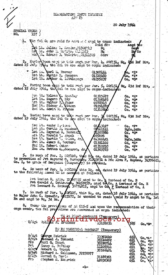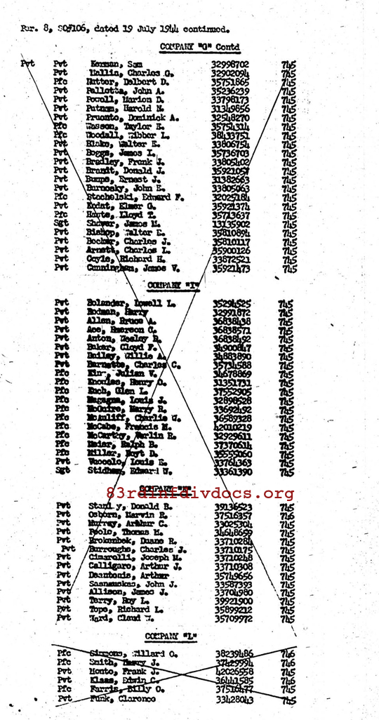 | Unit | E Company, 329th Infantry Regiment, 83rd Infantry Division |