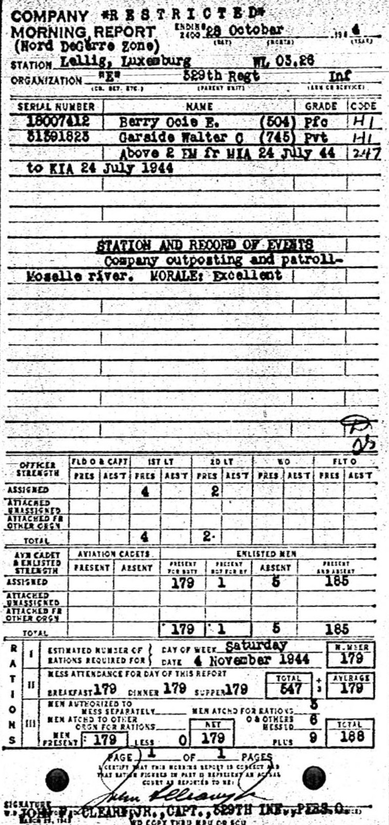 | 1944-09-18 | PVT | Missing in action as of July 24, 1944 | 745 | E / 329 | view page |