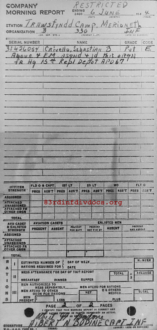 | 1944-06-06 | PVT | Assigned and joined from 15th Replacement Depot as of June 6, 1944 | B / 330 | view page | |
