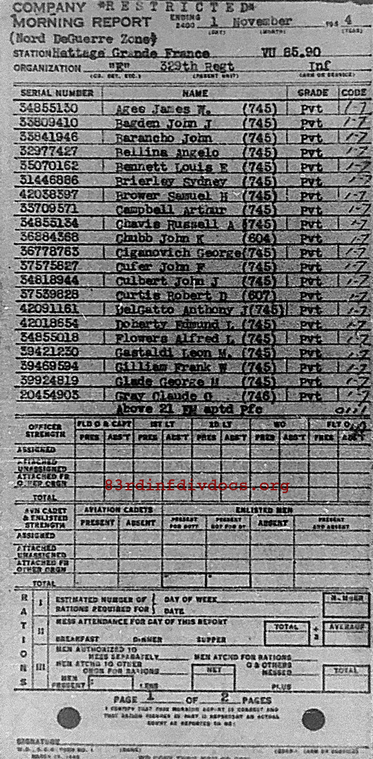 | Unit | 329th Infantry Regiment, 83rd Infantry Division |