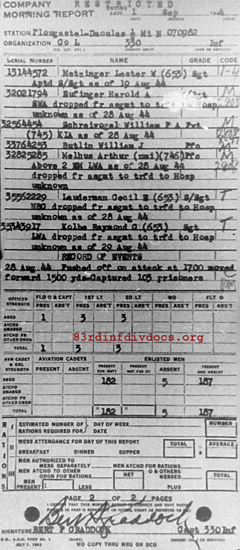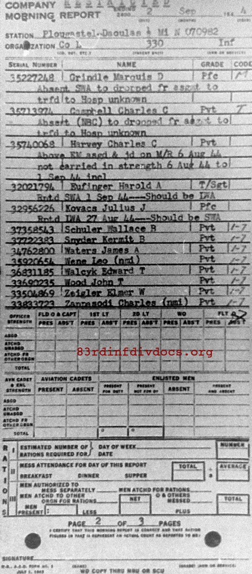 | Unit | 330th Infantry Regiment, 83rd Infantry Division |