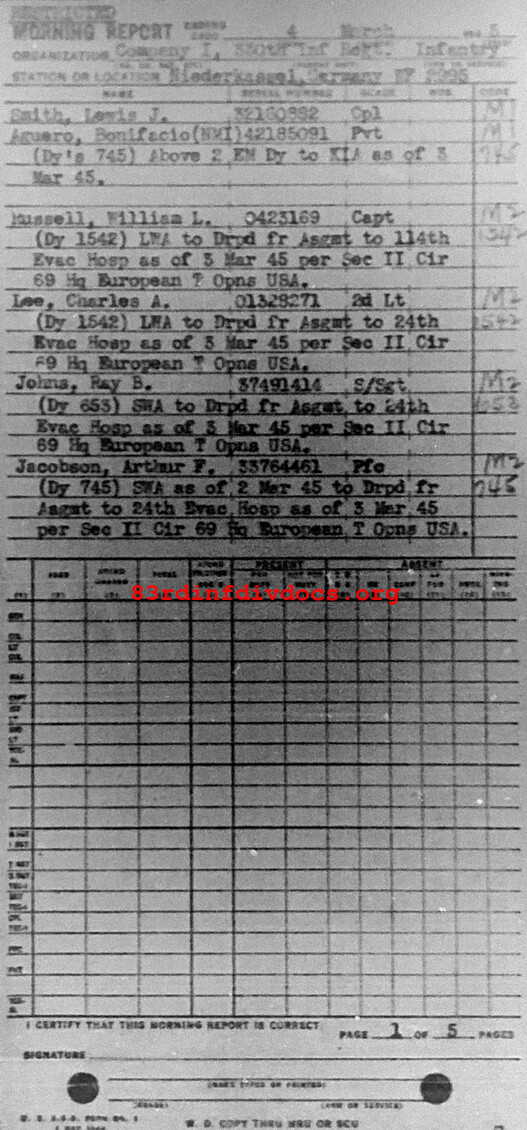 | 1945-03-04 | CPL | Killed in action on March 3, 1945 | 745 | I / 330 | view page |