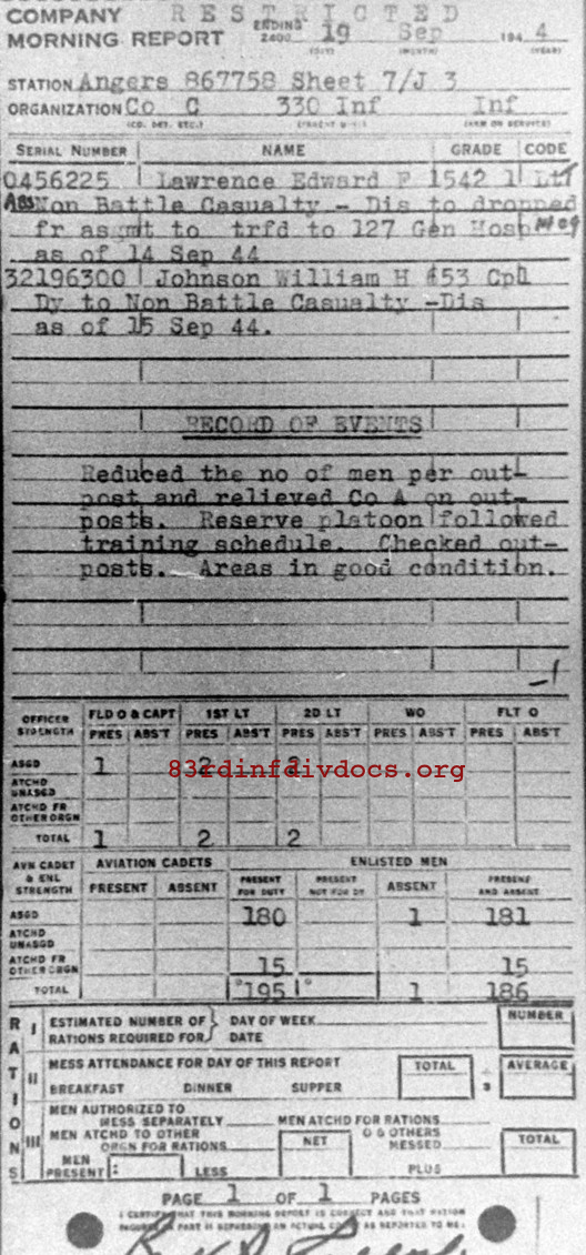 | Unit | C Company, 330th Infantry Regiment, 83rd Infantry Division |