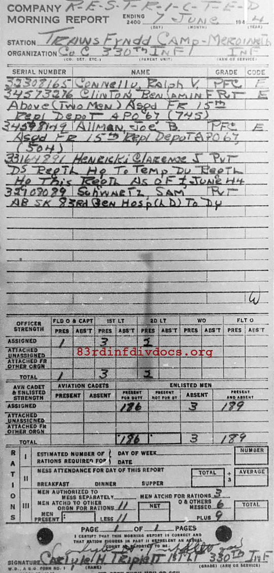 | 1944-06-07 | PFC | Assigned and joined from 15th Replacement Depot as of June 7, 1944 | 745 | C / 330 | view page |