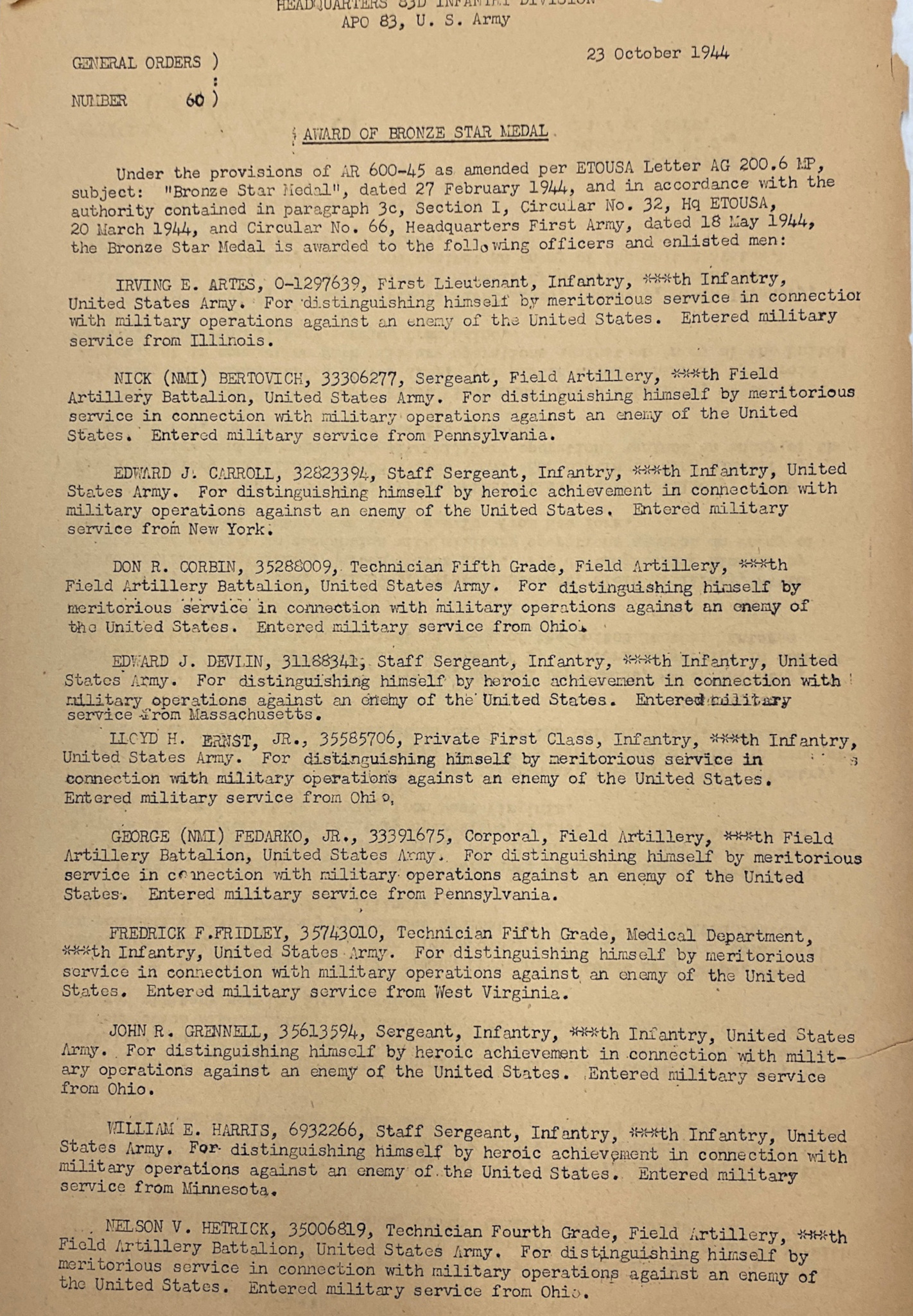 | 83 / 1944 / #60 | SSGT |