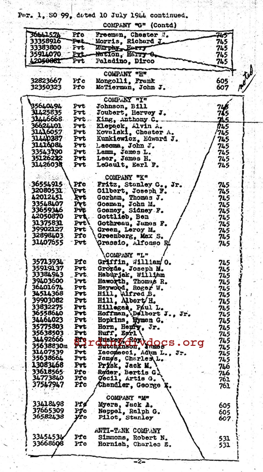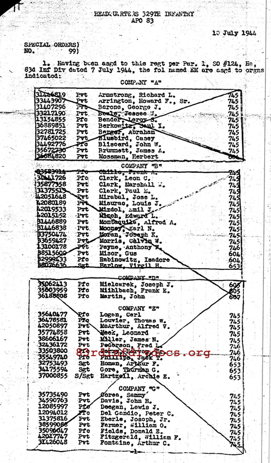 | 1944-07-08 | PFC | Assigned and joined from unknown unit as of July 8, 1944 | 605 | H / 329 | view page |