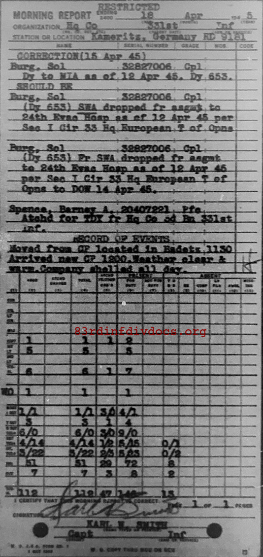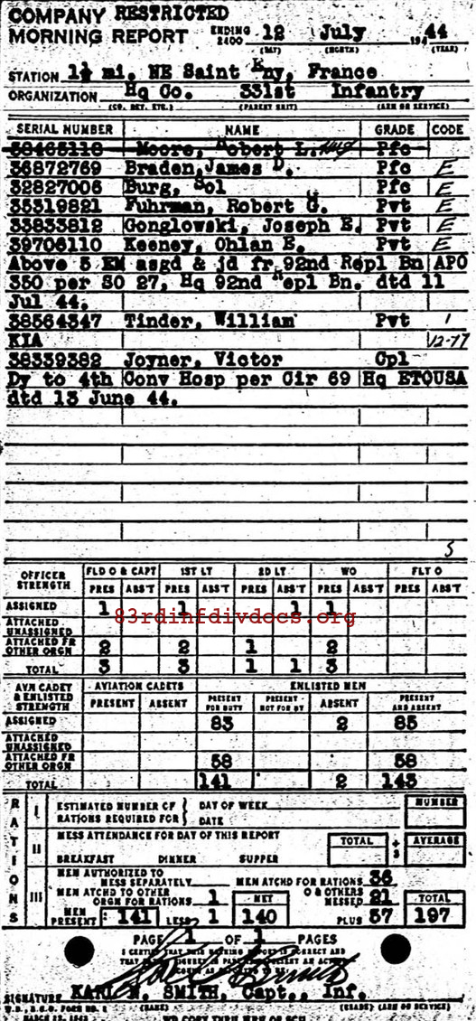 | Unit | 331st Infantry Regiment, 83rd Infantry Division |