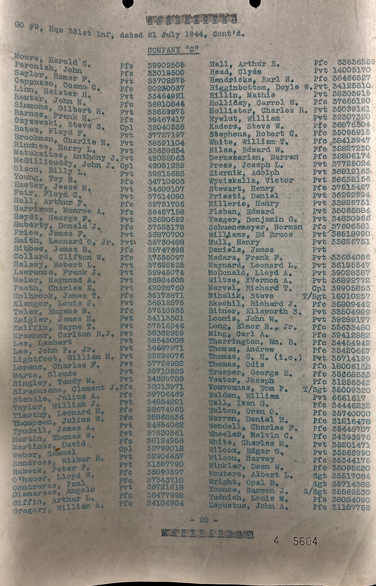 | Unit | C Company, 331st Infantry Regiment, 83rd Infantry Division |