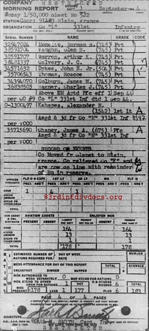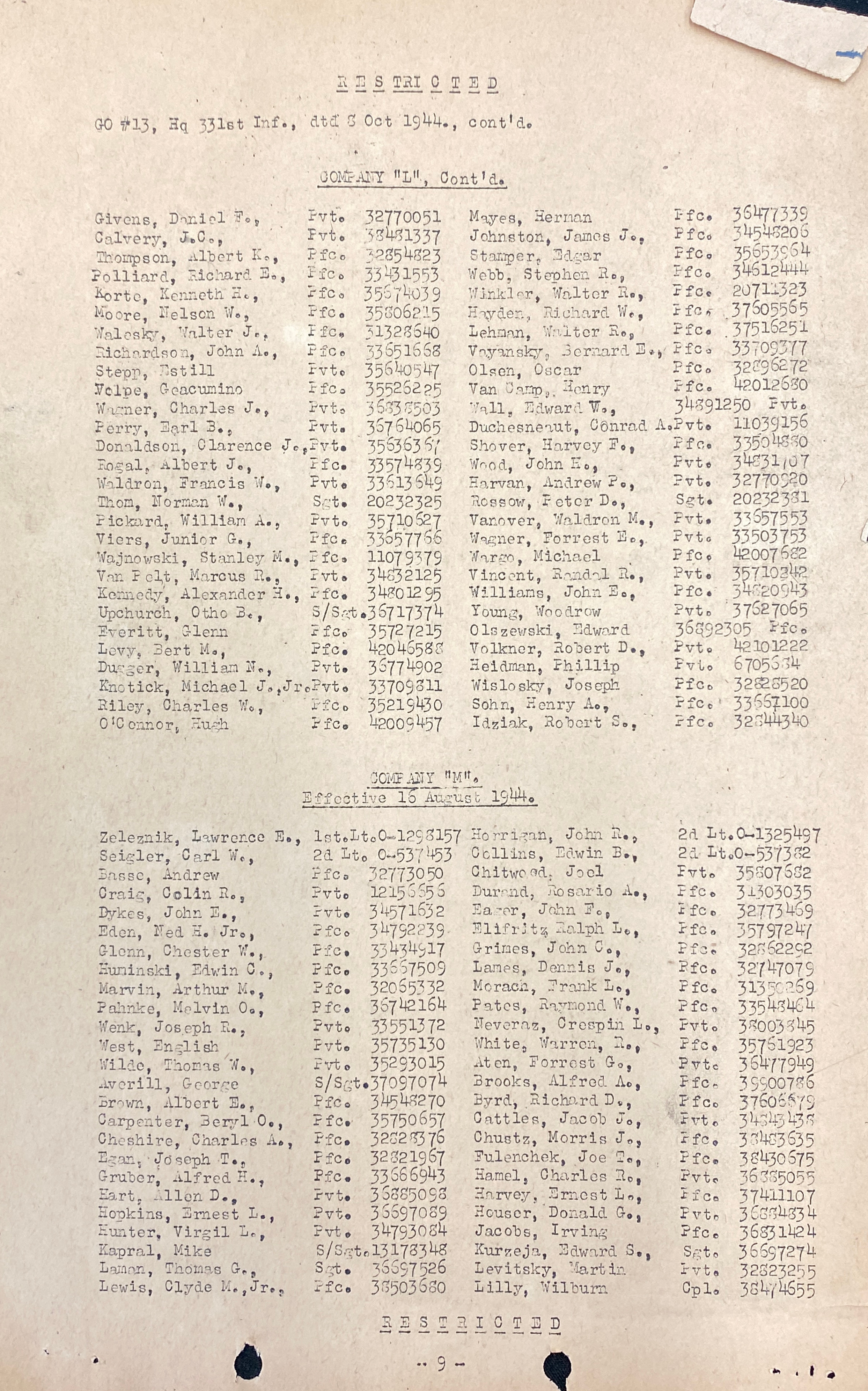 | Unit | L Company, 331st Infantry Regiment, 83rd Infantry Division |