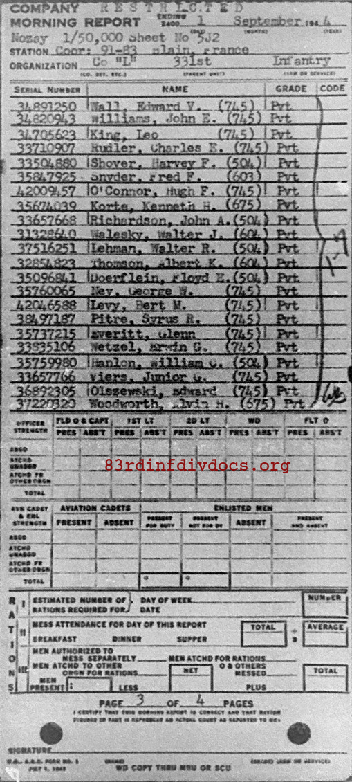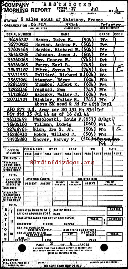 | 1944-07-17 | PVT | Assigned and joined from 46th Replacement Battalion as of July 16, 1944 | 604 | L / 331 | view page |