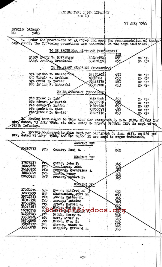 | 1944-07-16 | PFC | Assigned and joined from unknown unit as of July 16, 1944 | 345 | G / 329 | view page |