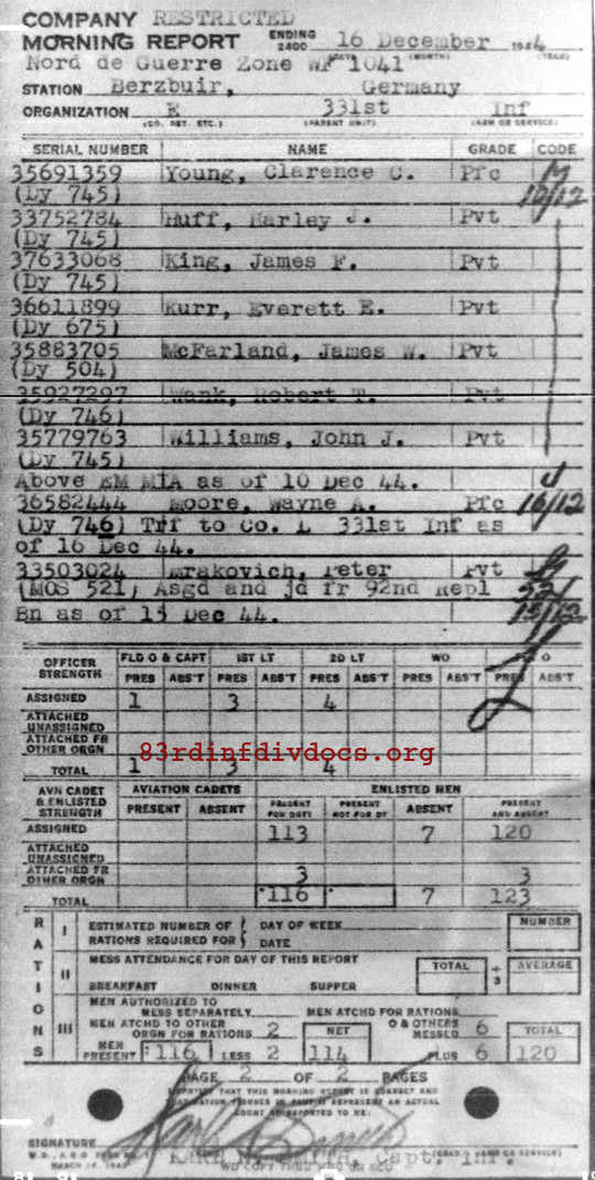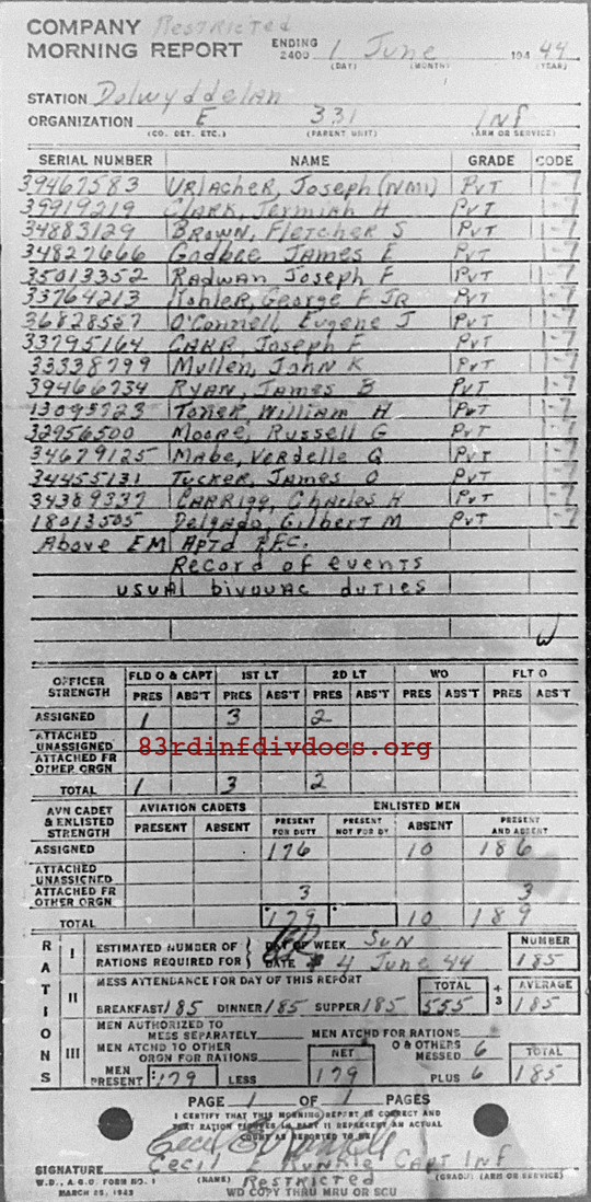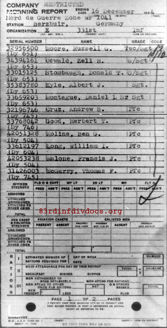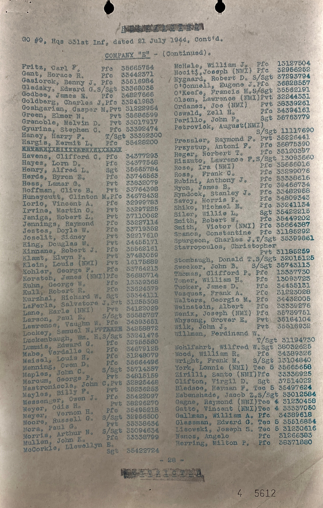 | Unit | E Company, 331st Infantry Regiment, 83rd Infantry Division |