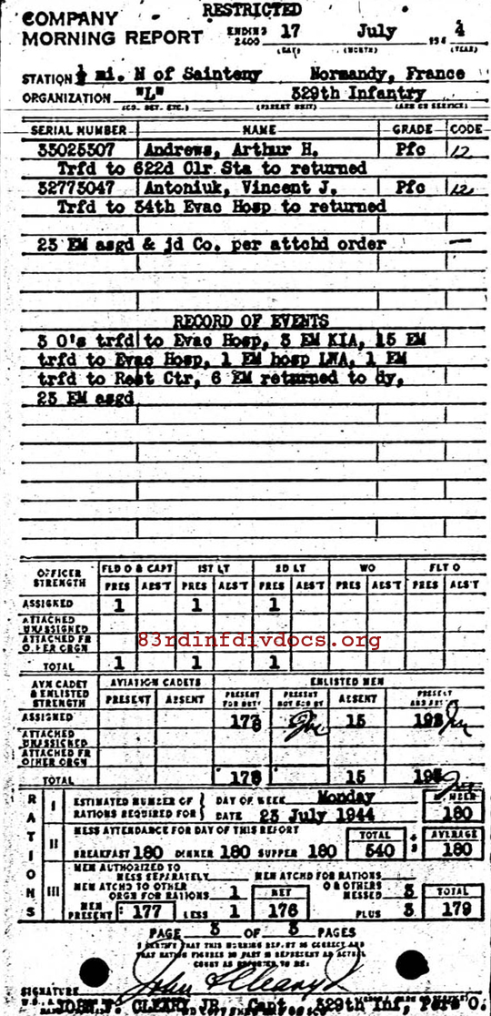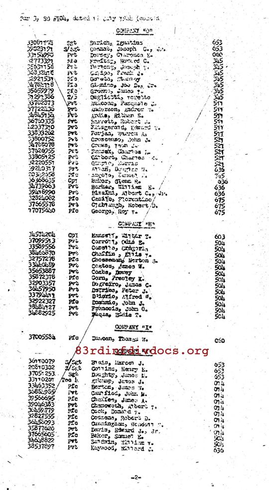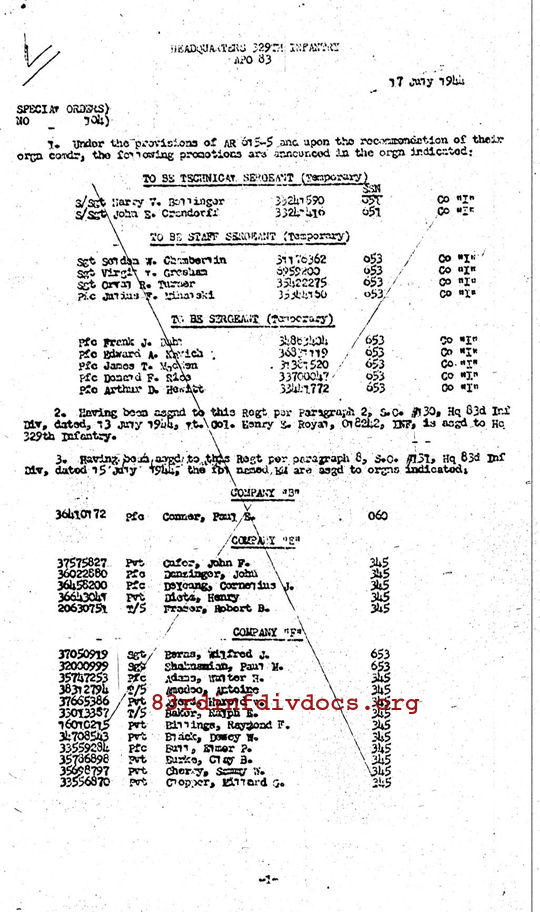 | Unit | L Company, 329th Infantry Regiment, 83rd Infantry Division |
