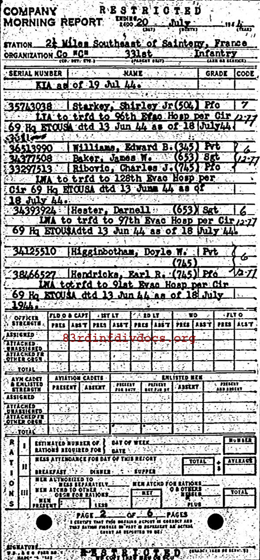 | 1944-07-20 | PFC | Killed in action on July 19, 1944 | 675 | C / 331 | view page |