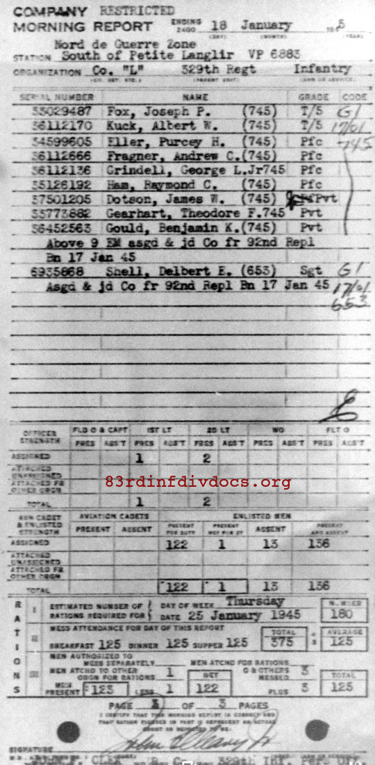 | 1945-01-18 | TEC5 | Assigned and joined from 92nd Replacement Battalion as of January 17, 1945 | 745 | L / 329 | view page |