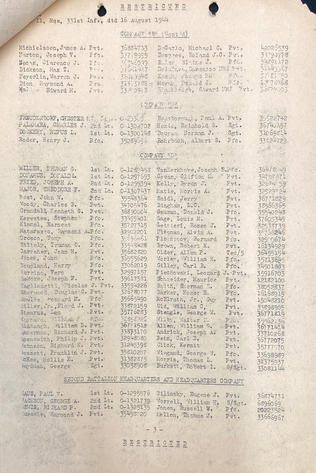 | Unit | 3rd Platoon, D Company, 331st Infantry Regiment, 83rd Infantry Division |