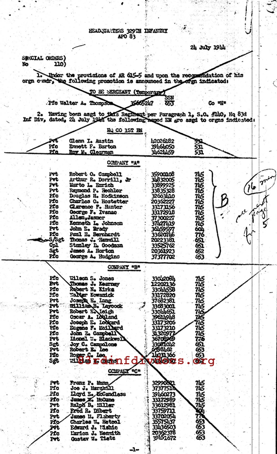 | Unit | A Company, 329th Infantry Regiment, 83rd Infantry Division |