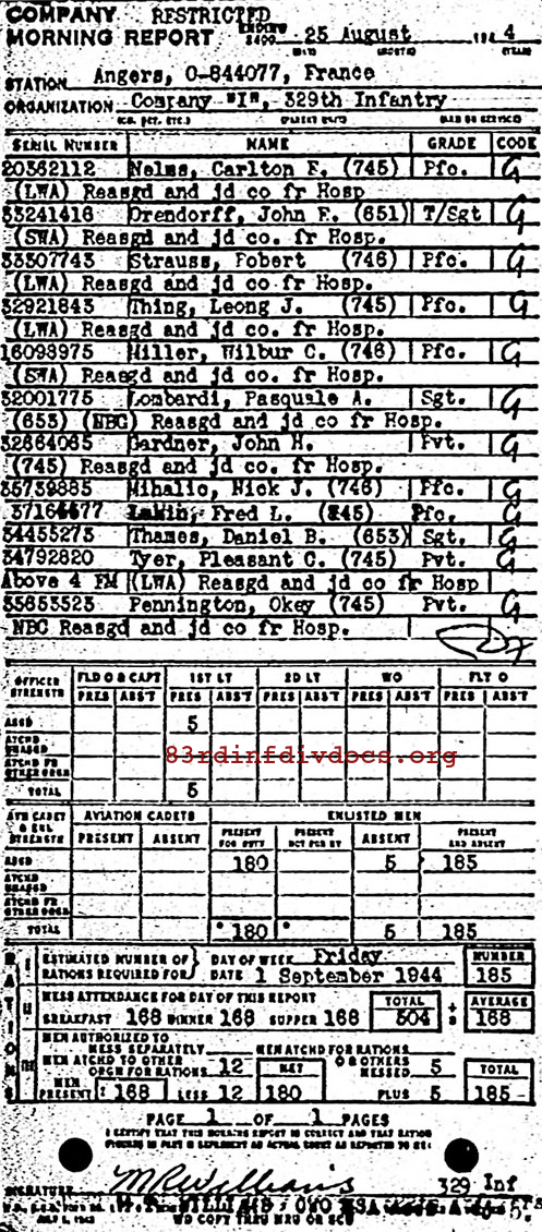| Unit | I Company, 329th Infantry Regiment, 83rd Infantry Division |