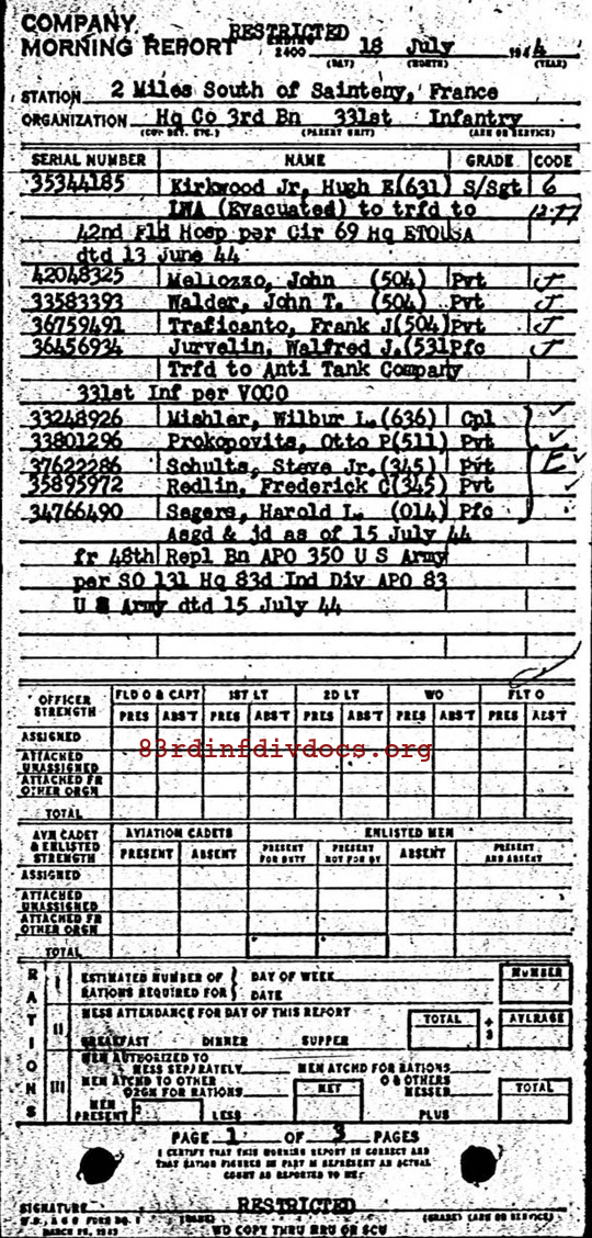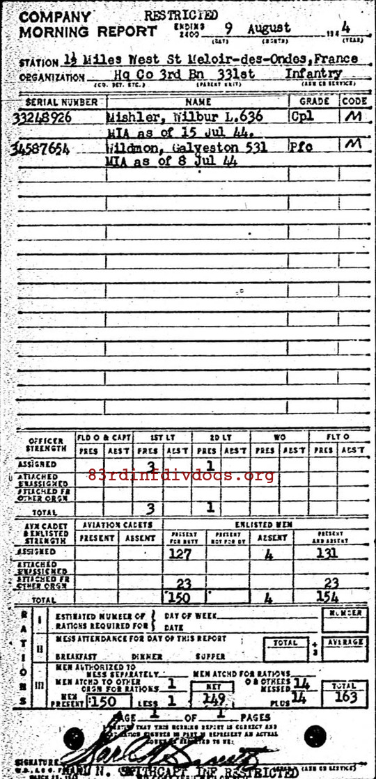 | 1944-08-09 | CPL | Missing in action as of July 15, 1944 | 636 | HQCO3BN / 331 | view page |