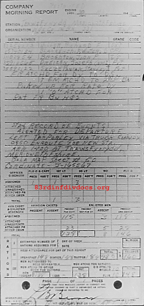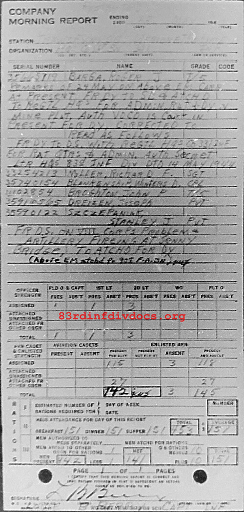 | 1944-05-20 | SGT | Attached to VIII Corps Problem as of May 20, 1944 | HQCO1BN / 331 | view page | |