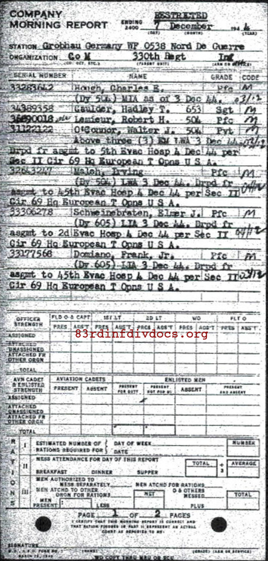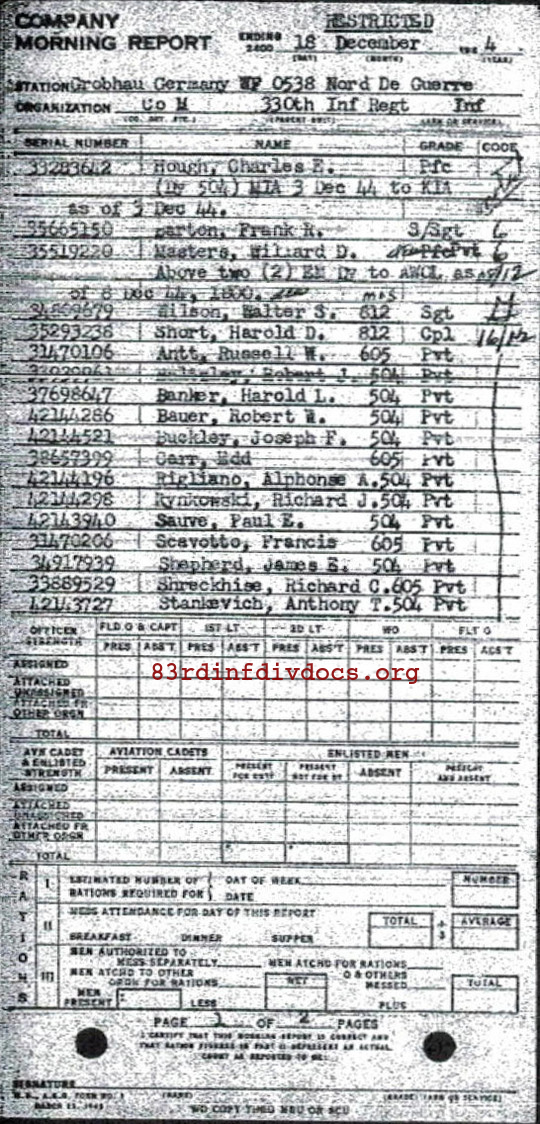 | Unit | 330th Infantry Regiment, 83rd Infantry Division |
