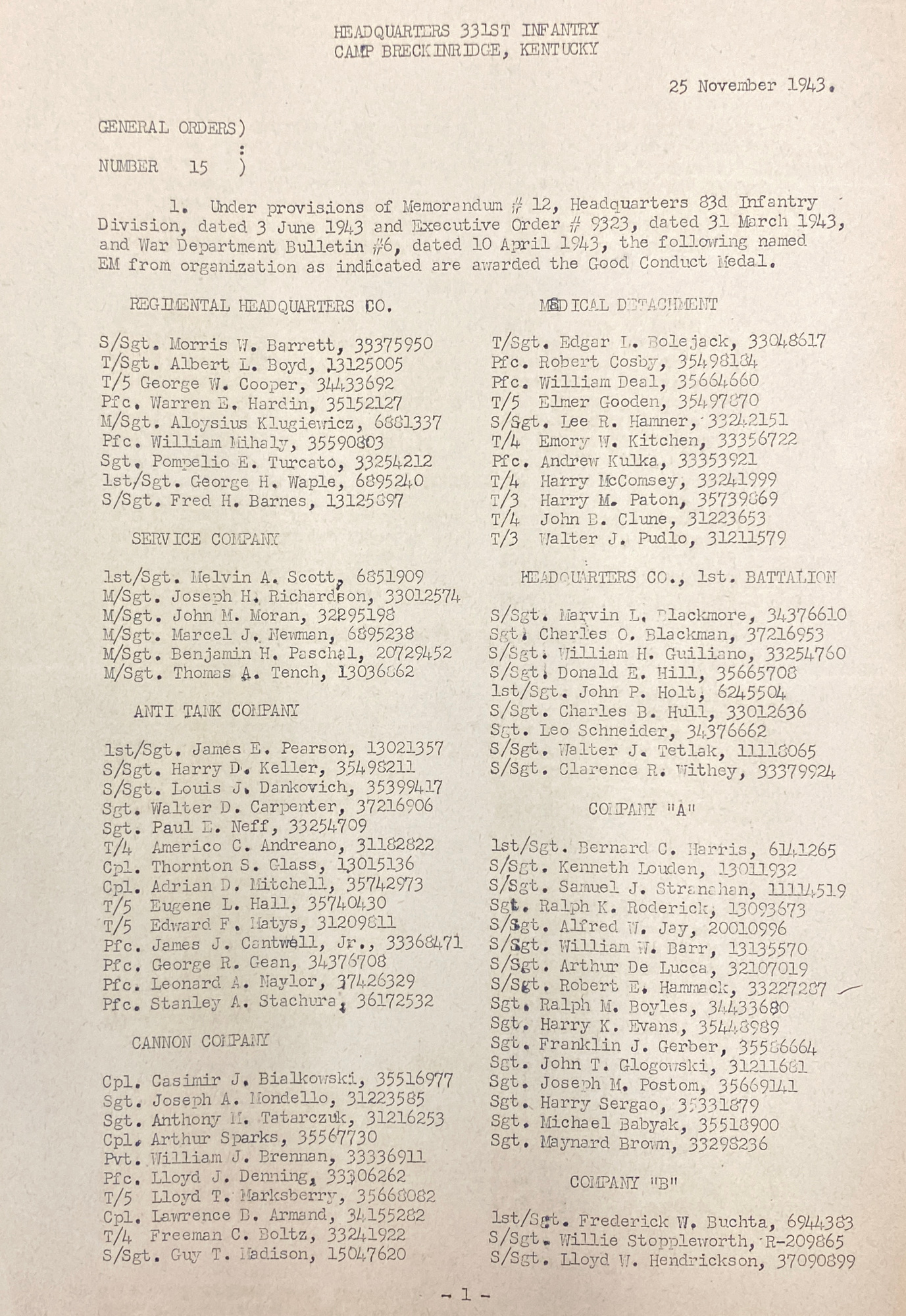 | Unit | Cannon Company, 331st Infantry Regiment, 83rd Infantry Division |